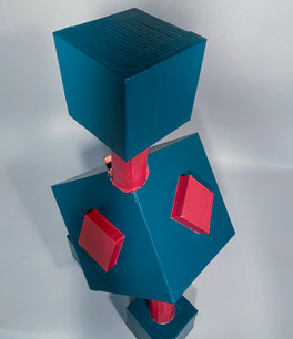 To say that this piece didn't test my patience would be a complete lie. There were a few times that I was very ready to throw in the towel and not even finish because of the frustration I was feeling. I convinced myself to see it through not just for myself but also for my grade! The biggest struggle that I had I creating this piece was trying to get the top most tube placed within the top of the large cube. It had to be attached in a way that the videos didn't really cover how to get it placed and cut right. It turned into a very time-consuming trial and error that eventually paid off. Another struggle that I had was in trying to create the tubes and make them curve the right way. Getting the cardboard to actually curve was relatively simple but getting them to stay curved and not snap open was a little more trying. The ends of the tubes that had to be seamed together kept pulling away and creating gaps which lead to needing more glue and trying to find the best way to keep them together.